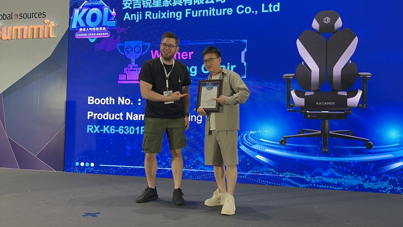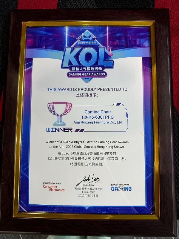 Vi er ekstremt beæret over å kunngjøre at vår Gaming Chair (RX-K6-6301PRO) har vunnet '2026 KOLs & Buyers' Favorite Gaming Gear Award på årets utstilling. Nok en gang har vi sikret oss KOLs Best Popularity Award, en anerkjennelse som fremhever vår urokkelige forpliktelse til fortreffelighet innen kvalitet og banebrytende design i spillestolindustrien. RX-K6-6301PRO, med sin enestående ergonomiske design, avanserte teknologi og stilige utseende, har høstet enstemmig ros fra KOLs (Key Opinion Leaders) og kjøpere, og har tjent denne prestisjetunge æren.